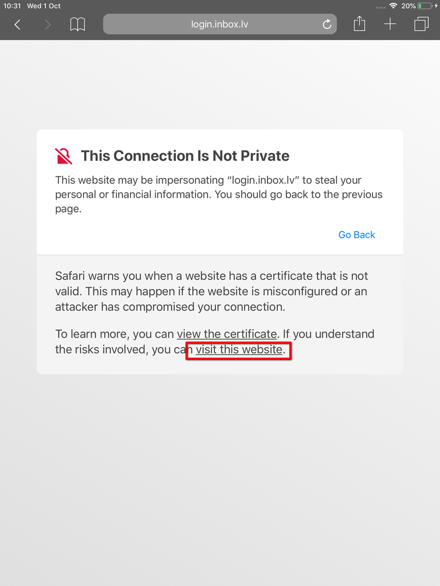 If the problem still exists, open the internet browser on your phone and enter the following address: https://login.inbox.lv